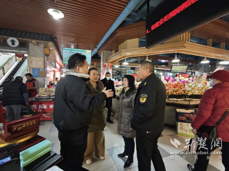 嚴密開展農(nóng)貿(mào)市場“優(yōu)秩序保安全迎新年”專項督查行動,分管領導帶隊檢查了東湖景園市場,重點檢查了市場內(nèi)外環(huán)境衛(wèi)生、長江漢江魚禁售、計量電子秤、保供穩(wěn)價、消防安全等情況。