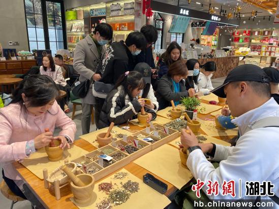 體驗(yàn)完炸圓子,臺胞們來到曇華林,在葉開泰草本茶咖·文創(chuàng)手作店動手自制香囊,并參觀武昌城史館,深入了解武昌古城的文化源流及發(fā)展變遷。