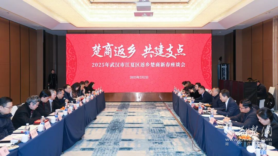 江夏區(qū)“楚商返鄉(xiāng) 共建支點”2025年新春座談會現(xiàn)場。通訊員供圖