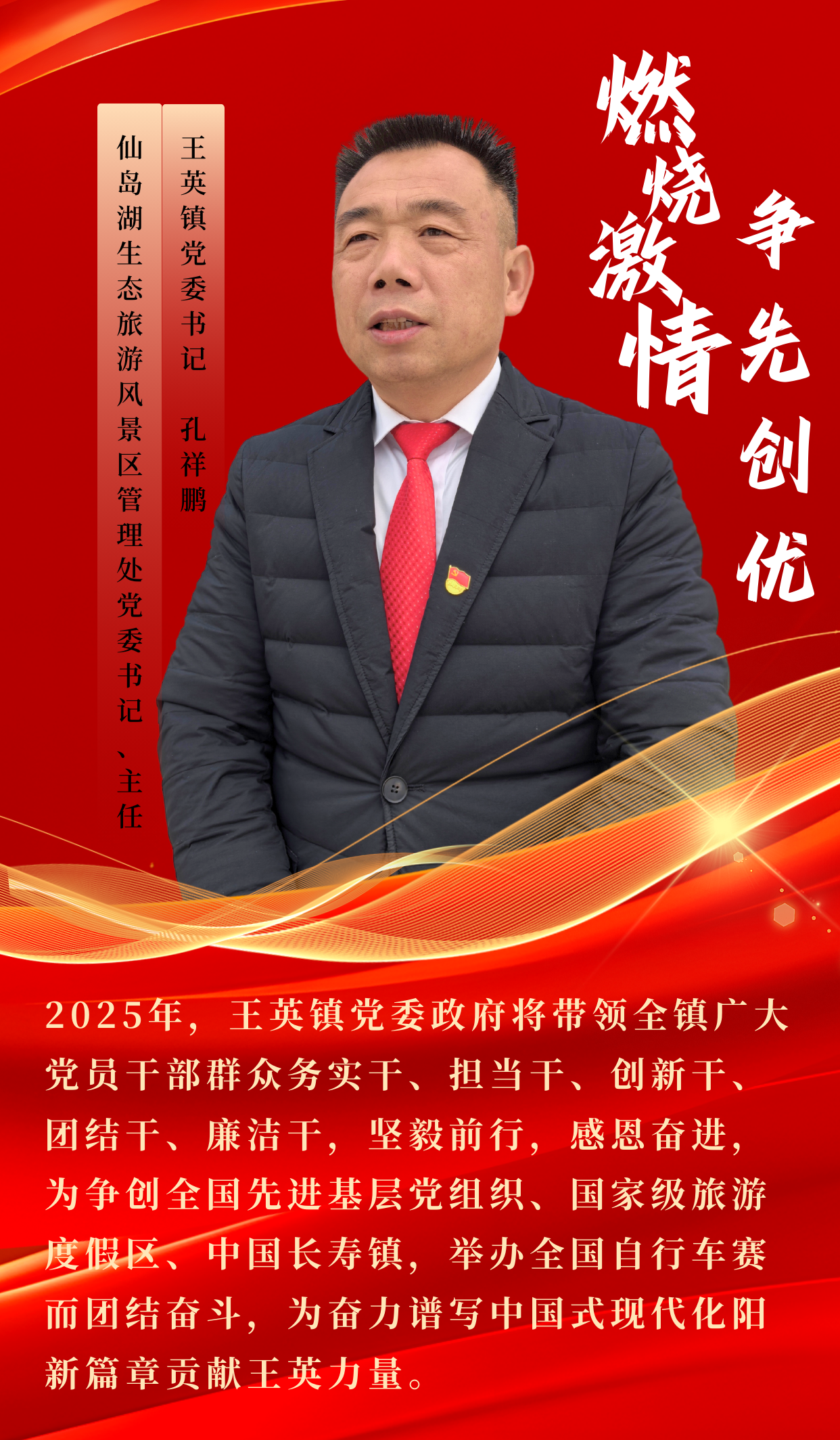 該鎮(zhèn)全體黨員干部熱血沸騰,為爭(zhēng)創(chuàng)全國(guó)先進(jìn)基層黨組織、爭(zhēng)創(chuàng)國(guó)家級(jí)旅游度假區(qū)、中國(guó)長(zhǎng)壽鎮(zhèn),以及舉辦全國(guó)自行車(chē)賽目標(biāo)摩拳擦掌。新的一年,王英鎮(zhèn)將以“拼”的意識(shí)、“搶”的狀態(tài)、“進(jìn)”的作為,發(fā)起新的沖刺,以鎮(zhèn)域之彩點(diǎn)亮縣域之光。