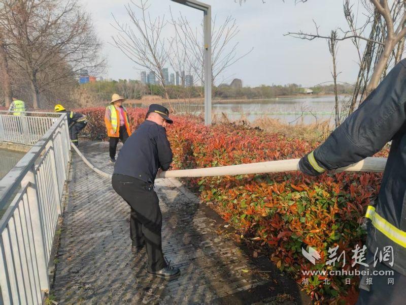 當(dāng)日下午,東湖風(fēng)景區(qū)城管執(zhí)法局四中隊隊員王建偉、宋威、劉鑫宇在九女墩附近巡查時,發(fā)現(xiàn)華僑城運動中心南山草木集門店附近有濃煙升起。他們迅速趕到現(xiàn)場,發(fā)現(xiàn)起火點為門店下方野塘中的蘆葦和干草,起火原因不明。由于野塘地勢復(fù)雜,無法直接取水滅火,現(xiàn)場情況較為緊急。