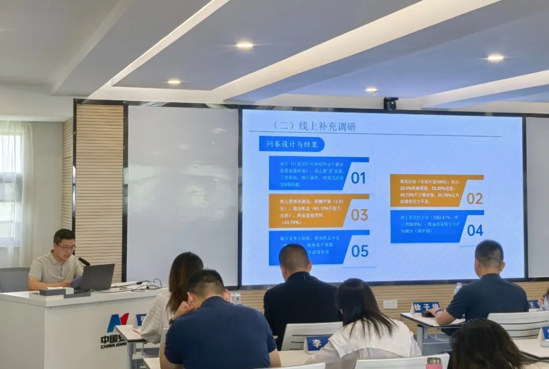 “以新需求為導(dǎo)向,打造‘區(qū)級核心商圈+街區(qū)融合中心+社區(qū)特色網(wǎng)點(diǎn)’三級聯(lián)動商業(yè)布局,全面提升居民的生活品質(zhì)?!薄皩⒖萍汲晒D(zhuǎn)化、團(tuán)隊(duì)培養(yǎng)等指標(biāo)納入A、B和C類人才動態(tài)評價體系,探索‘區(qū)內(nèi)貢獻(xiàn)’與‘(人才)住房資源’的權(quán)重平衡機(jī)制”。結(jié)業(yè)式上,五組學(xué)員代表分別圍繞城市更新、AI技術(shù)賦能產(chǎn)業(yè)轉(zhuǎn)型、發(fā)展現(xiàn)代服務(wù)業(yè)體系、都市近郊農(nóng)業(yè)發(fā)展路徑探索和打造人才“引育留用”服務(wù)體系等主題,詳細(xì)匯報了本組調(diào)研成果,對相關(guān)領(lǐng)域存在的問題進(jìn)行深入剖析,提出了一些有借鑒意義的思考建議。