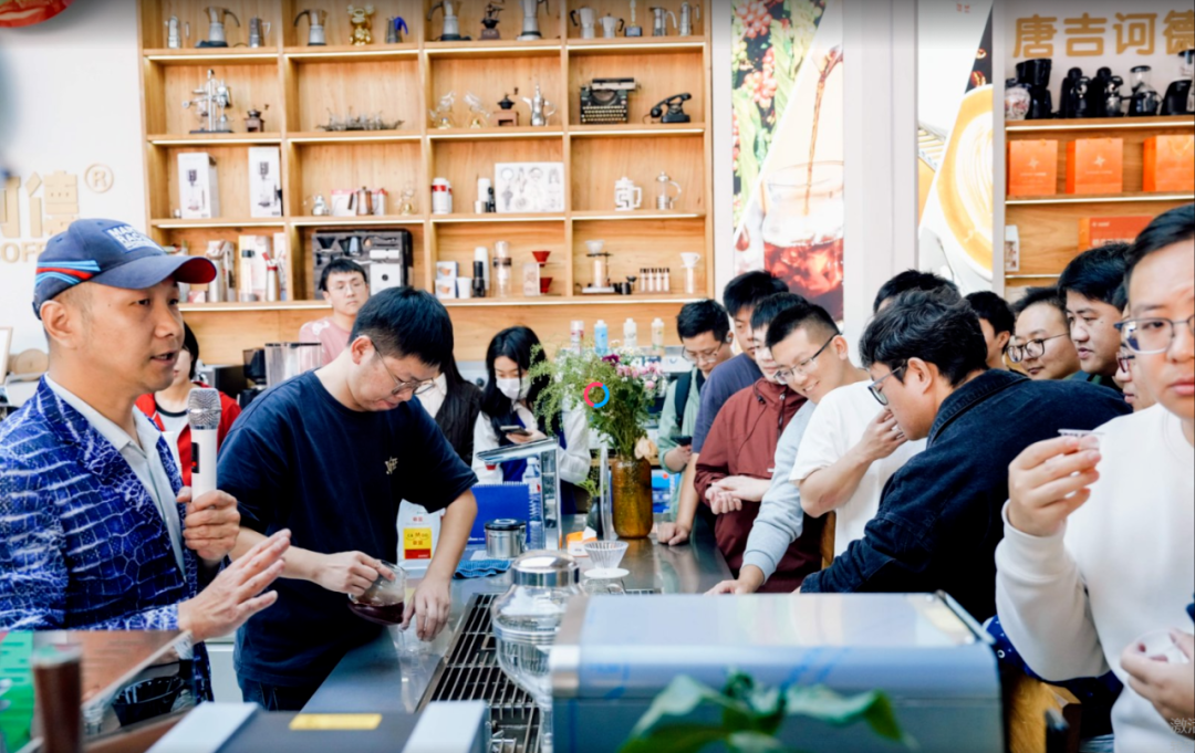 除了誠樂咖啡以外,在這種創(chuàng)新生態(tài)中,商戶的角色被重新定義。佰咖匯在越南自建椰漿生產(chǎn)線,通過直播將“漢口北咖啡街”影響推向全國;唐吉訶德商貿(mào)將生意做成“課堂”,每月培養(yǎng)上百名學(xué)員掌握從烘焙到運(yùn)營的全鏈條技能;更有商戶打造“咖啡實(shí)驗(yàn)室”,讓采購商體驗(yàn)生豆到萃取的全流程定制服務(wù)?!翱Х仍缫巡皇巧唐?,而是連接生活方式與商業(yè)價(jià)值的媒介。”入駐漢口北10年之久的咖啡供應(yīng)鏈企業(yè)金捷成咖啡負(fù)責(zé)人感慨。