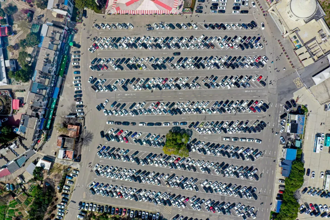 清明假期,木蘭景區(qū)群停車場(chǎng)上演“大型車展”,秩序井然。