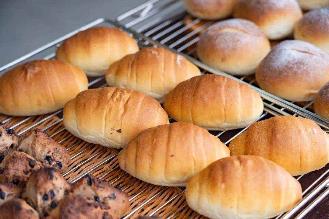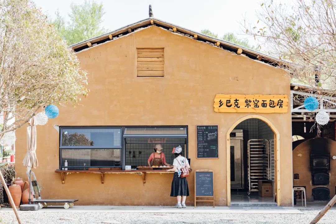 300℃的土窯,柴火噼啪作響。戴著粗布手套的師傅用長柄木鏟送進面團,時間一到,米面包、紅豆包、咖啡包等現烤面包裹著焦香出爐,讓人垂涎欲滴。