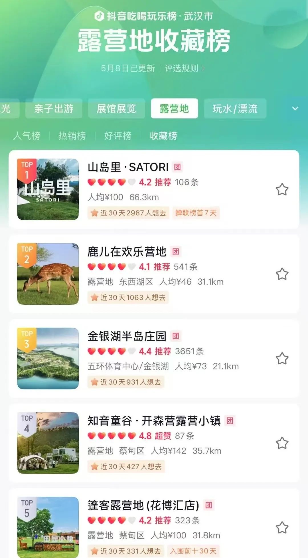 黃陂山島里營地雙榜TOP1 實(shí)至名歸