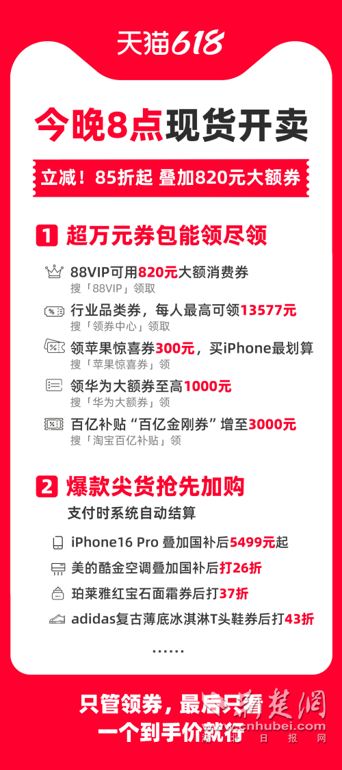 荊楚網(wǎng)(湖北日報網(wǎng))訊(通訊員 朱飛)晚8點(diǎn),天貓618現(xiàn)貨開賣!