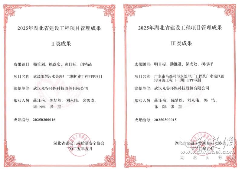光谷環(huán)保項目管理成果證書。通訊員供圖