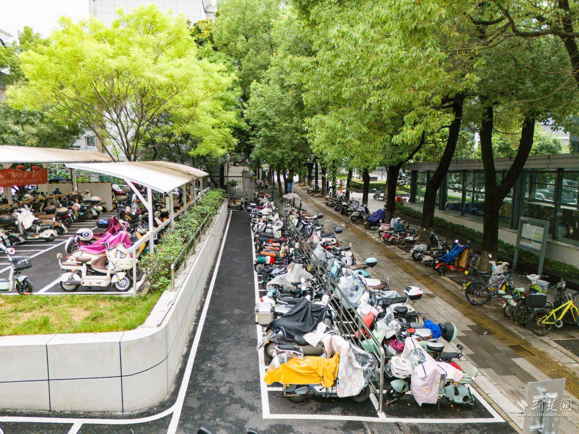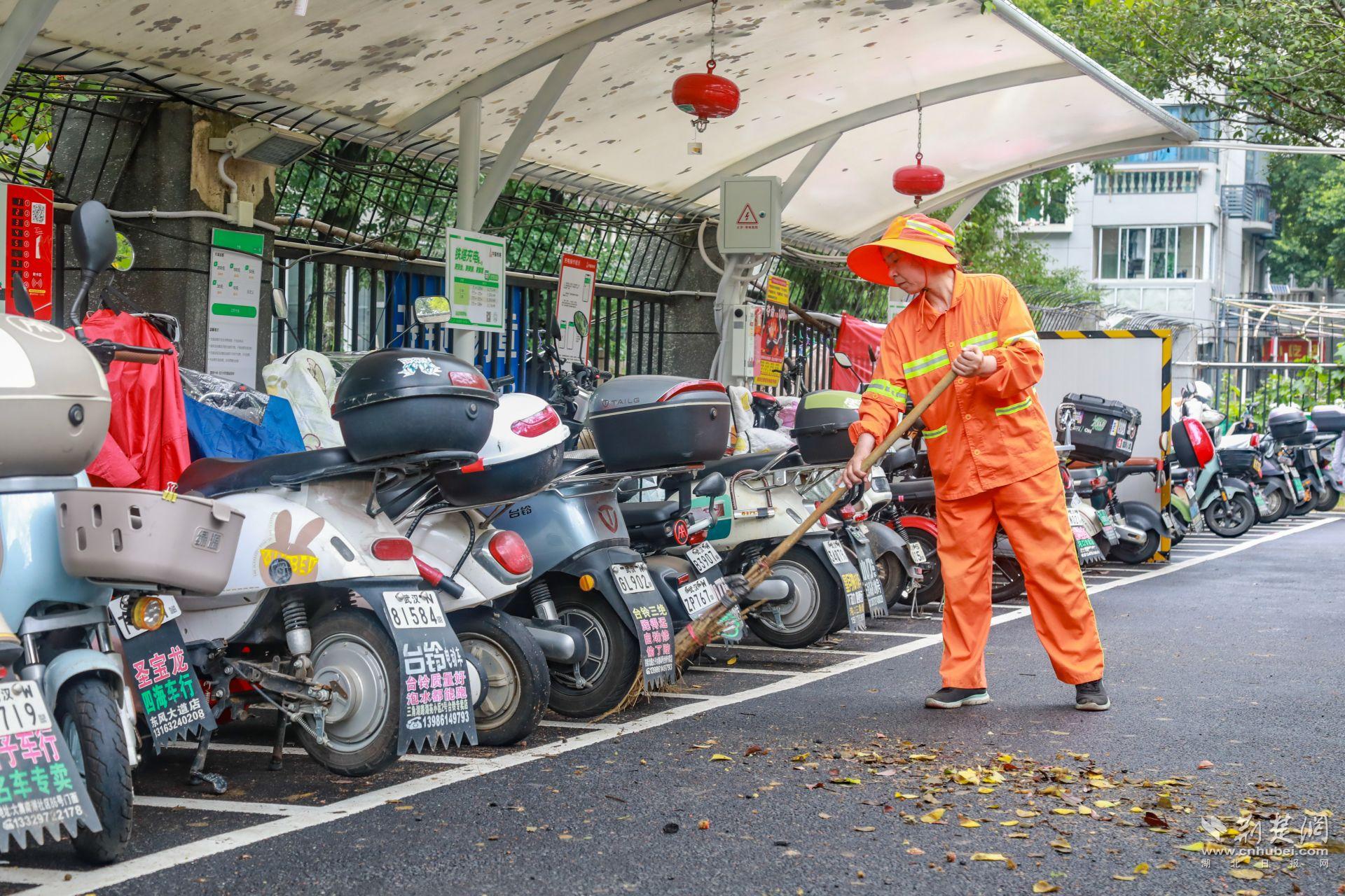 體育中心一帶人流密集,周邊高校、商圈、居民區(qū)扎堆,非機(jī)動(dòng)車(chē)保有量大,亂停亂放、私拉亂接的現(xiàn)象一度突出?!霸缤砀叻宓臅r(shí)候,電動(dòng)車(chē)能‘插’到哪就停到哪,充電線從窗戶(hù)、欄桿上扯下來(lái),既不安全也不好管?!必?fù)責(zé)這一片區(qū)巡查的城管隊(duì)員陳強(qiáng)說(shuō),最多的時(shí)候一條路邊能擠幾十輛車(chē)。