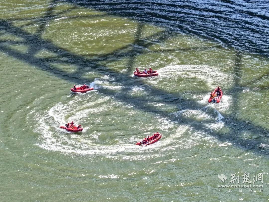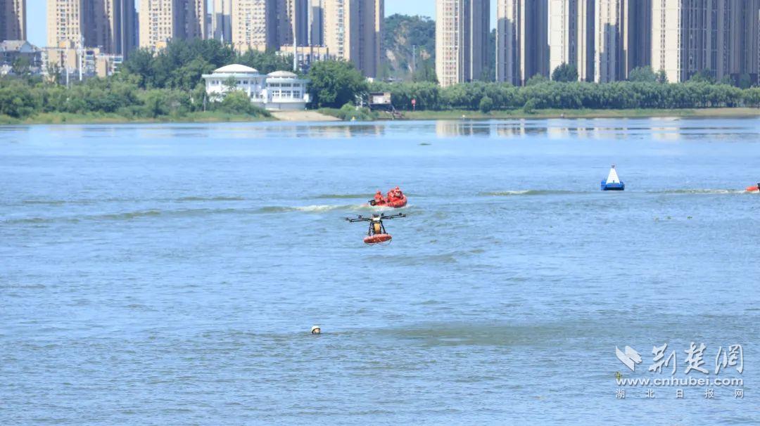 活動(dòng)現(xiàn)場還模擬了7·16武漢國際渡江節(jié)救援保障演練。只見漢臺救援專業(yè)力量協(xié)同作戰(zhàn),模擬了選手體力不支、突發(fā)疾病、被水流帶偏航道等可能出現(xiàn)的多種緊急情況。水面上,救生艇快速靠近“遇險(xiǎn)”人員;救援人員迅速將其拉上船,實(shí)施急救。同時(shí),無人機(jī)高空巡航,利用熱成像與高清攝像頭實(shí)時(shí)監(jiān)測江面,一旦發(fā)現(xiàn)異常,便即刻通知救援船只精準(zhǔn)救援,為渡江節(jié)筑牢安全防線。