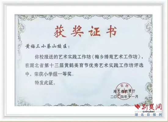 不完全統(tǒng)計(jì),17年來,蔡山鎮(zhèn)中心小學(xué)共培養(yǎng)“繡娘”3000余人,挑花作品在省級(jí)評(píng)選中多次獲得金、銀、銅獎(jiǎng),學(xué)校被黃梅縣授予“黃梅挑花傳承基地”稱號(hào)。