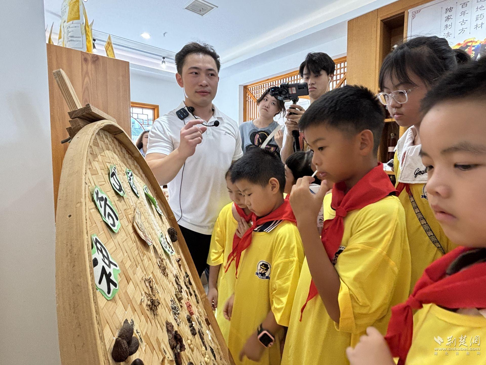 “中藥房現(xiàn)在的藥品種類達到了600多種,日常常見的路邊雜草,在中醫(yī)藥人眼中可能是治病救命的藥草。”在國醫(yī)館工作人員的指引下,孩子們學著辨識不同的藥材。
