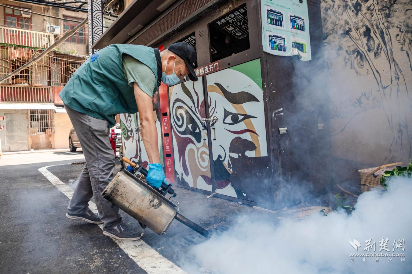 其中江漢區(qū)城管部門聯(lián)合衛(wèi)健部門,組織專業(yè)消殺隊伍,利用熱煙霧機對轄區(qū)公共區(qū)域開展系統(tǒng)性消殺,同時對窨井投放滅蚊幼蟲緩釋劑,確保消殺工作高效徹底。“不僅要消殺成蟲,更要斷了蚊蟲的‘后路’”現(xiàn)場一位工作人員解釋道。洪山區(qū)城管部門則采用“清理+消殺”方式,由工作人員身著防護服,先使用高壓水槍對垃圾清運車輛、地埋站設(shè)備進行深度沖洗,再對垃圾容器、排水溝、果皮箱等易滋生蚊蟲的部位進行細致噴灑,全方位筑牢夏季防蚊“防護盾”。
