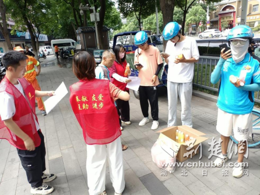 荊楚網(wǎng)(湖北日?qǐng)?bào)網(wǎng))訊(記者 何婧 實(shí)習(xí)生 陳靖南 通訊員 徐鼎)烈日炎炎,關(guān)愛不缺席。7月25日,武漢高溫持續(xù),江漢區(qū)北湖街道妙三社區(qū)湖錦酒樓“暖新驛站”前人氣高漲,“炎炎夏日送清涼,絲絲關(guān)愛暖心房”主題慰問活動(dòng)在此熱情開啟,為一線戶外工作者送上清涼包物資,帶來一份及時(shí)的守護(hù),也送去一座城市的溫度。