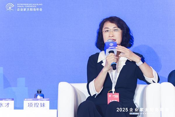 圖為阿里巴巴集團(tuán)副總裁項煌妹8月3日上午在2025企業(yè)家太陽島年會主論壇思客對話環(huán)節(jié)進(jìn)行發(fā)言。
