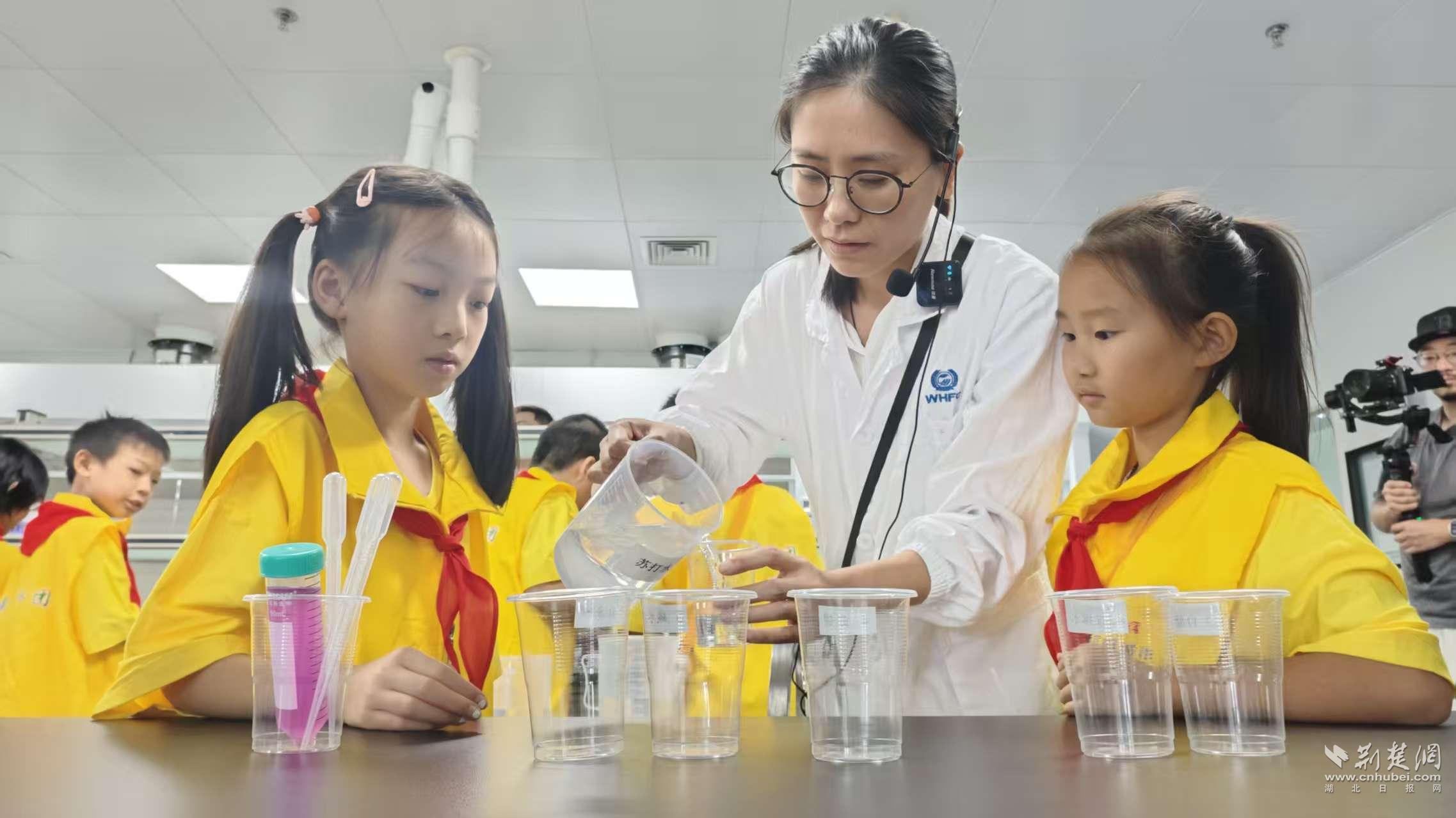 “小黃鶴觀察團(tuán)”的觀察員們在武漢食品化妝品檢驗(yàn)所科普基地展廳,通過“聲、光、電”科技和多媒體技術(shù),沉浸式學(xué)習(xí)食品安全檢驗(yàn)檢測和營養(yǎng)衛(wèi)生方面的科普知識(shí)。