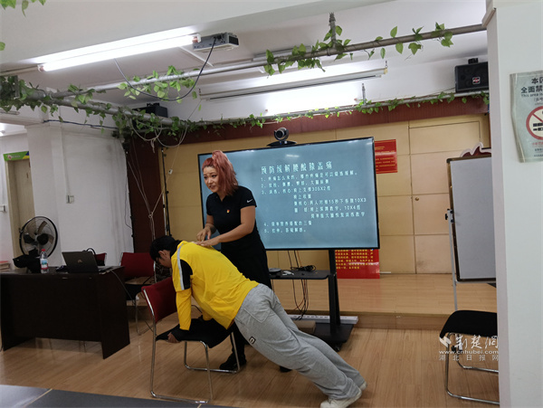 樊容帶領(lǐng)學(xué)員練習(xí)實用健康知識。 通訊員供圖