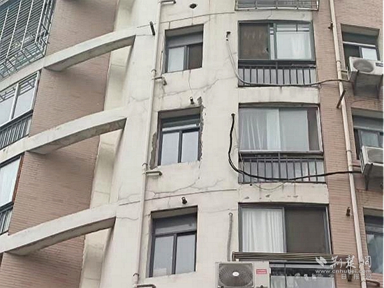 2021年4月,因加氣磚質(zhì)量存在問(wèn)題,遇水膨脹導(dǎo)致外墻開裂,一道近2米長(zhǎng)的裂縫橫亙樓體,外墻面的水泥塊經(jīng)常脫落,居民出行存在極大的安全隱患。