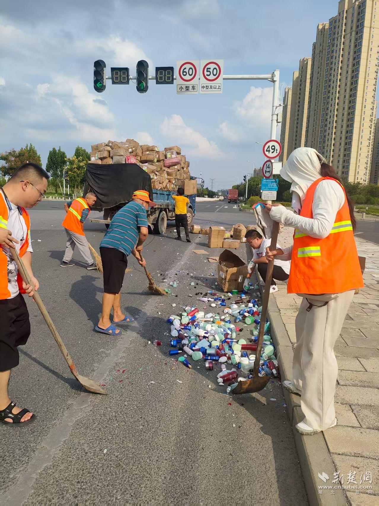 不到20分鐘,散落的貨物被清理干凈,路面恢復(fù)整潔。“真的太感謝了!沒有你們幫忙,我一個(gè)人不知道要弄到什么時(shí)候,還可能堵車出事故?!必涇囁緳C(jī)連聲致謝,感嘆環(huán)衛(wèi)工人幫他解了燃眉之急。