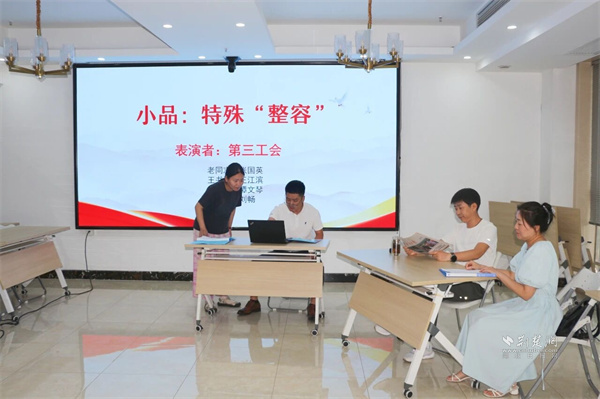 才藝展示團(tuán)隊(duì)賽環(huán)節(jié),《心靈美容院》《“照鏡子 正衣冠”研討會(huì)》《特殊整容》等精彩節(jié)目輪番上演。黨群干部通過小品、朗誦、合唱等多元形式,生動(dòng)呈現(xiàn)在思想引導(dǎo)、作風(fēng)建設(shè)和團(tuán)隊(duì)凝聚中的實(shí)踐與思考,剖析了工作中的“痛點(diǎn)”“堵點(diǎn)”,映射出黨群工作者直面問題的工作實(shí)效。