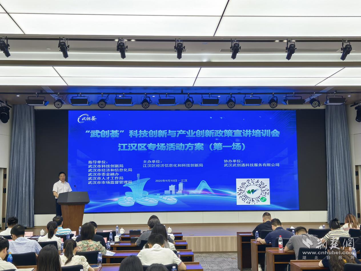 荊楚網(wǎng)(湖北日?qǐng)?bào)網(wǎng))訊(記者 何婧 通訊員 蘭子君 李卉)9月10日上午,“武創(chuàng)薈”科技創(chuàng)新與產(chǎn)業(yè)創(chuàng)新政策宣講培訓(xùn)會(huì)——江漢區(qū)第一場專場活動(dòng)在武漢金融街大廈舉行。活動(dòng)由江漢區(qū)經(jīng)科局主辦,金融街集團(tuán)、武創(chuàng)通科技公司承辦,武漢市科創(chuàng)局、市經(jīng)信局、市委金融辦、市人才工作局、市市場監(jiān)管局聯(lián)合指導(dǎo)。