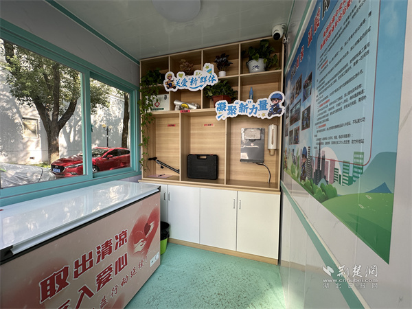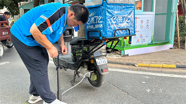 社區(qū)在北大門入口處設(shè)立的“暖心補給站”,成了小哥們的“能量加油站”。拉開補給站的冰柜,冰爽的礦泉水整齊擺放;醫(yī)藥箱里,創(chuàng)可貼、碘伏、藿香正氣水等應(yīng)急藥品一應(yīng)俱全;維修工具箱和電動打氣筒已幫十多位小哥解決過電動車爆胎、零件松動的難題;打包袋也方便了小哥臨時更換破損外賣包裝。“夏天送完餐,來這兒取瓶冰水,渾身的燥熱都散了,心里也涼快!”快遞小哥王師傅邊說邊拿起一瓶水,臉上滿是滿足。