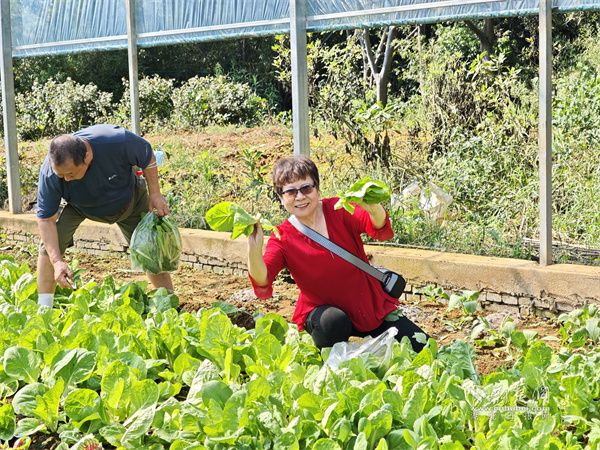 隨后的田園采摘環(huán)節(jié),居民們戴上手套、提起菜籃,親手采摘各類時令蔬菜,在勞動中體驗收獲的喜悅。大家一邊彎腰采摘,一邊交流生活中的種植經(jīng)驗和健康飲食心得,現(xiàn)場充滿歡聲笑語。