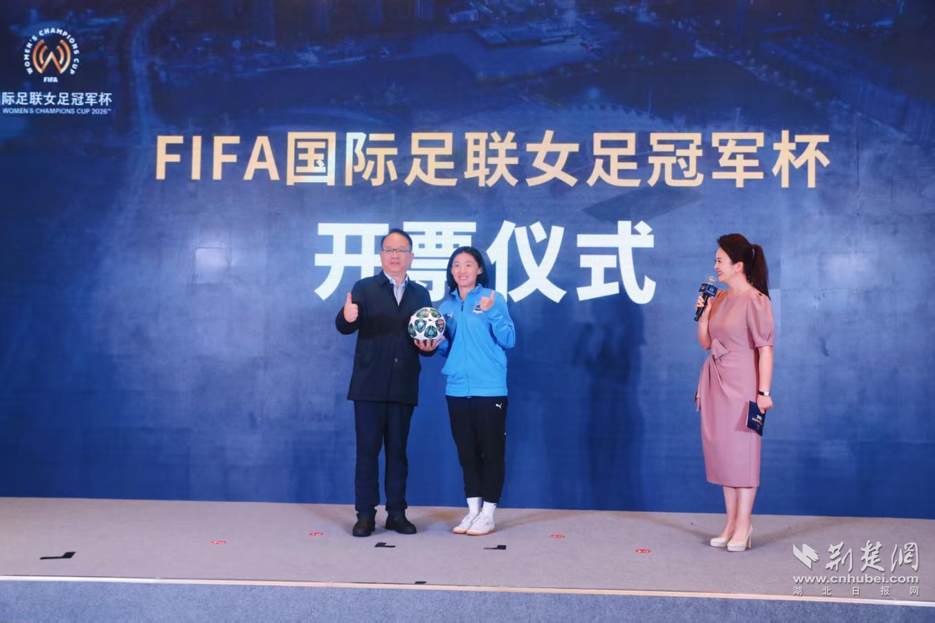 圖為:國際足聯(lián)女足冠軍杯票樣揭幕現(xiàn)場。