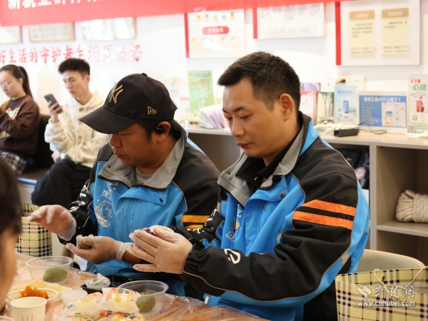 在制作青團(tuán)時(shí),現(xiàn)場(chǎng)同步開(kāi)展“黃鶴家人茶話會(huì)”,搭建起代際對(duì)話的橋梁。花堤社區(qū)紫陽(yáng)之星小區(qū)黨支部書(shū)記金文芳講述了小區(qū)變遷故事,傳遞長(zhǎng)者對(duì)騎手們的關(guān)懷;新就業(yè)群體入黨積極分子樂(lè)倩倩則分享了送餐途中幫扶孤寡老人的暖心經(jīng)歷。兩代人的真誠(chéng)交流深化了情感共鳴,現(xiàn)場(chǎng)洋溢著家人般的溫暖氛圍。