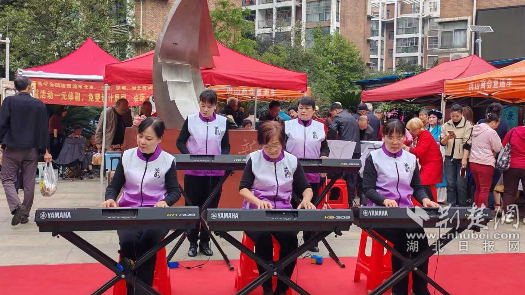隨后,文藝匯演精彩啟幕。社區(qū)黨員、文藝愛好者與居家養(yǎng)老服務(wù)中心志愿者聯(lián)袂獻(xiàn)藝,帶來了一場精彩紛呈的視聽盛宴:昂揚的大合唱唱出了老人們對黨的感恩與對生活的熱愛;節(jié)奏明快的舞蹈展現(xiàn)出蓬勃向上的精神風(fēng)貌;電子琴齊奏音色悠揚、婉轉(zhuǎn)悅耳;經(jīng)典黃梅戲選段韻味悠長,勾起老一輩的青春回憶;輕快靈動的口琴演奏贏得臺下陣陣喝彩。表演者全心投入,老人們看得津津有味,不時跟著哼唱、拍手叫好,歡聲笑語交織成最動人的節(jié)日樂章。