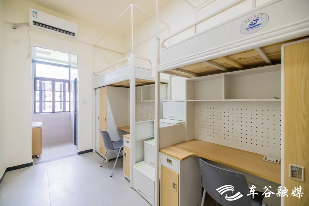 軍山校區(qū)建有7棟學(xué)生宿舍樓。北區(qū)的2棟主要面向本科生,以四人間為主。南區(qū)的5棟主要面向研究生,碩士生宿舍為兩人間,博士生宿舍為八人套房。宿舍樓一層為公共空間與服務(wù)樞紐,設(shè)有接待前臺,提供寄存、維修、反饋等服務(wù),設(shè)有多功能學(xué)習(xí)與活動(dòng)空間、自習(xí)室、研討室、黨團(tuán)活動(dòng)室、咨詢室,滿足多種需求。二層及以上是住宿區(qū),電梯直達(dá)、功能完善,公共服務(wù)區(qū)配備洗衣機(jī)、烘干機(jī)、洗鞋機(jī)、直飲機(jī)。宿舍采用智能門鎖,上床下桌,獨(dú)立衛(wèi)浴,多功能學(xué)習(xí)桌搭配人體工學(xué)座椅,為學(xué)生提供舒適的學(xué)習(xí)住宿環(huán)境。