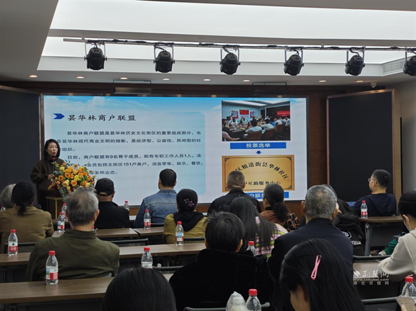 活動中,曇華林社區(qū)黨委書記以特色黨課形式,講述商戶聯(lián)盟的發(fā)展歷程。作為承載武漢百年文脈的老街,曇華林既是文化地標,也是商業(yè)聚落。過去,商戶間缺乏聯(lián)動,業(yè)態(tài)同質化、客源分散、基礎設施共享難等問題突出,“各掃門前雪”的局面制約了街區(qū)整體發(fā)展。黨課詳細梳理了聯(lián)盟從最初幾戶攜手,到如今百余家商戶協(xié)同共進的轉型,清晰呈現(xiàn)“單打獨斗”到“同心共治”的實踐路徑,凸顯黨建引領在推動商戶共建、共治、共享中的核心作用。