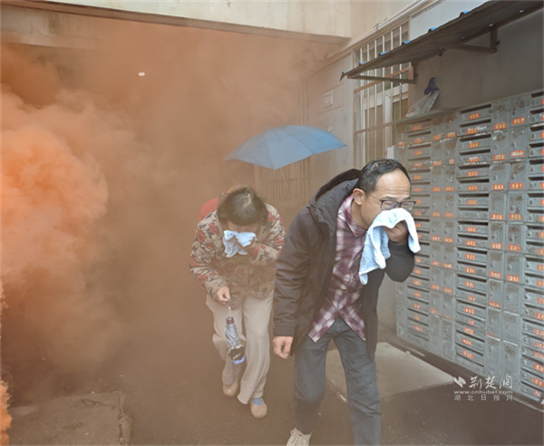 隨后,6棟居民樓模擬火災(zāi)疏散演練啟動(dòng)?!盁熿F彈點(diǎn)燃!滅火組壓制初期火源,疏散組組織撤離!”指令下達(dá)后,滅火組迅速攜帶器材沖進(jìn)樓道撲救模擬起火點(diǎn);疏散組手持熒光指揮棒,在樓層樓梯口、轉(zhuǎn)角處布控,引導(dǎo)居民彎腰捂鼻、有序撤離。