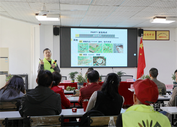 武漢市園林科學(xué)研究院工程師裴張新帶來秋冬季病蟲害防治小課堂。 通訊員供圖