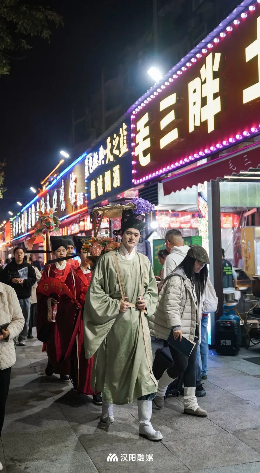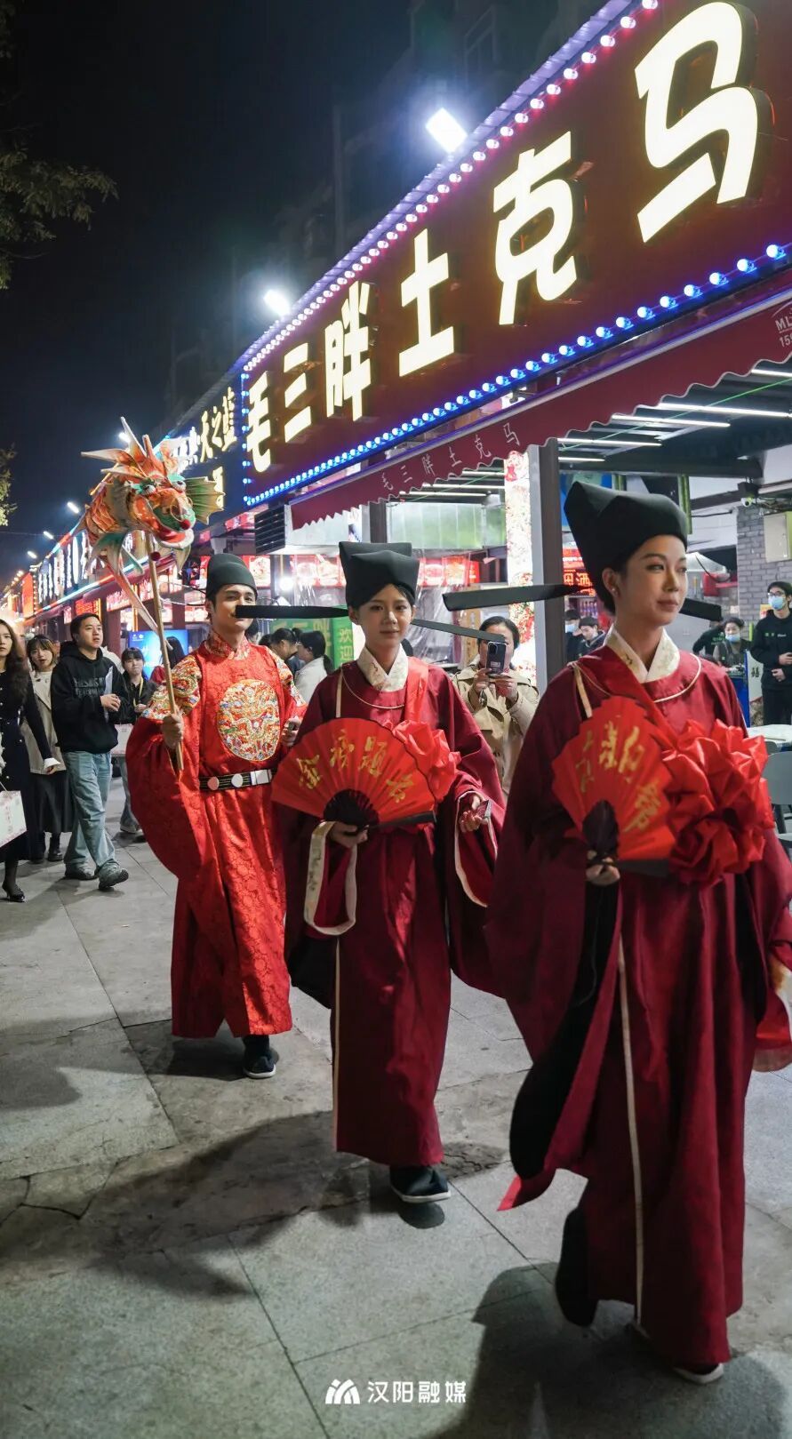 今晚,頭戴烏紗帽、身著飛魚(yú)服的“狀元郎”化身“首席引烤官”,帶領(lǐng)舉人秀才巡街互動(dòng),一句“客官骨骼清奇,必是吃貨轉(zhuǎn)世”逗樂(lè)全場(chǎng)。更勁爆的是,“知音漢陽(yáng)”視頻號(hào)直播間狂撒福利:無(wú)敵燒烤、毛大佑、老油條等10家名店“限時(shí)霸王餐”線上直送,解鎖免費(fèi)擼串的快樂(lè)!