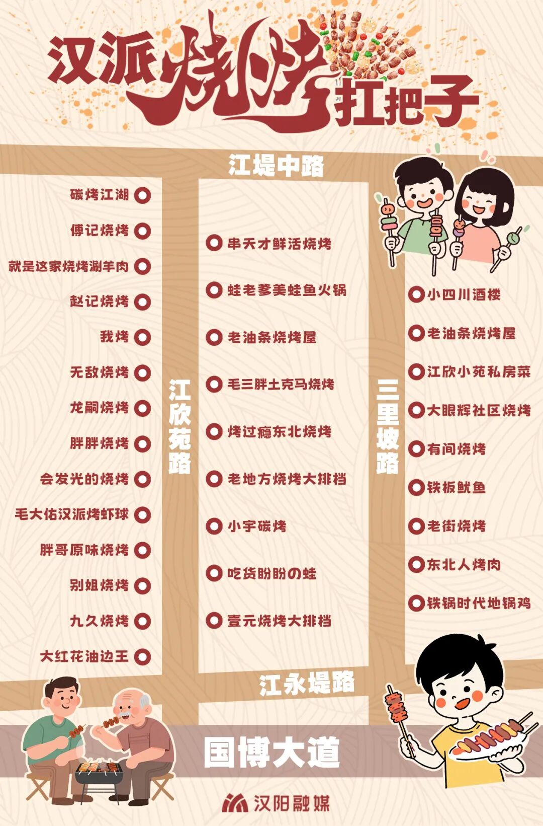 若問(wèn)武漢哪里藏著最地道的漢派燒烤煙火氣,漢陽(yáng)江欣苑路必須擁有姓名!這條300余米的街道,眼下堪稱漢派燒烤的“華山論劍場(chǎng)”。