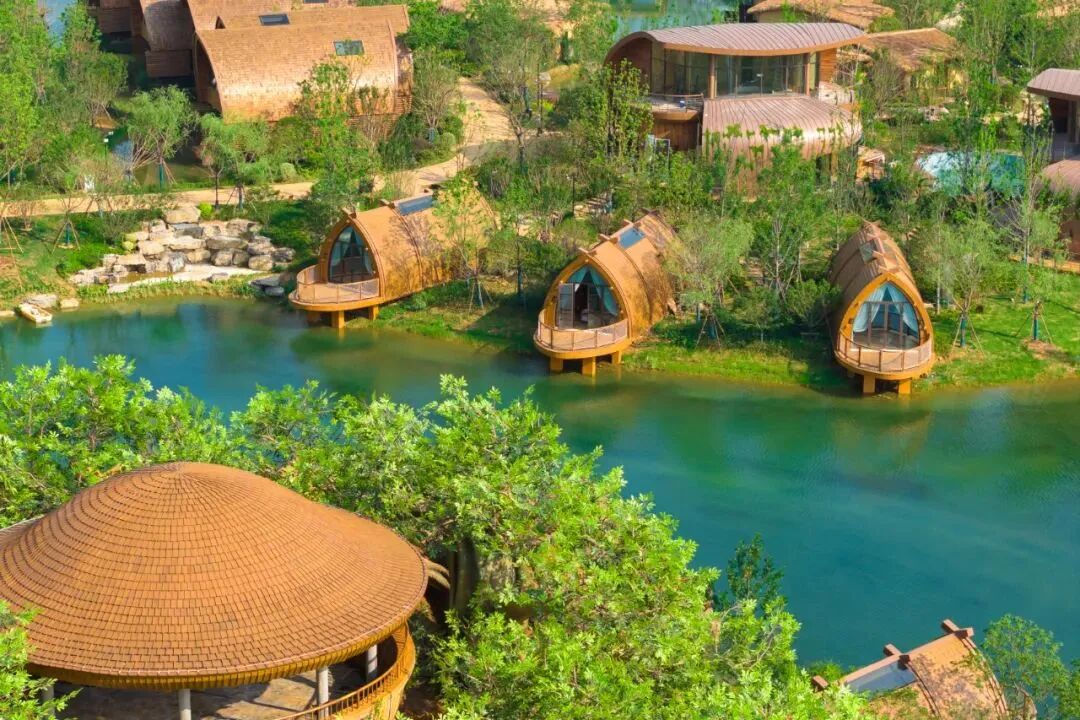 酒店擁有585間特色客房,包括495間湖景酒店客房和90間度假木屋房。其中,全國首座人造榕樹樹屋成為網(wǎng)紅打卡點,度假木屋區(qū)中,樹屋“藏”在密林間,船屋則“漂”在水面上,為親子家庭提供夢幻般的度假體驗,特色房型廣受市場追捧,節(jié)假日一房難求。