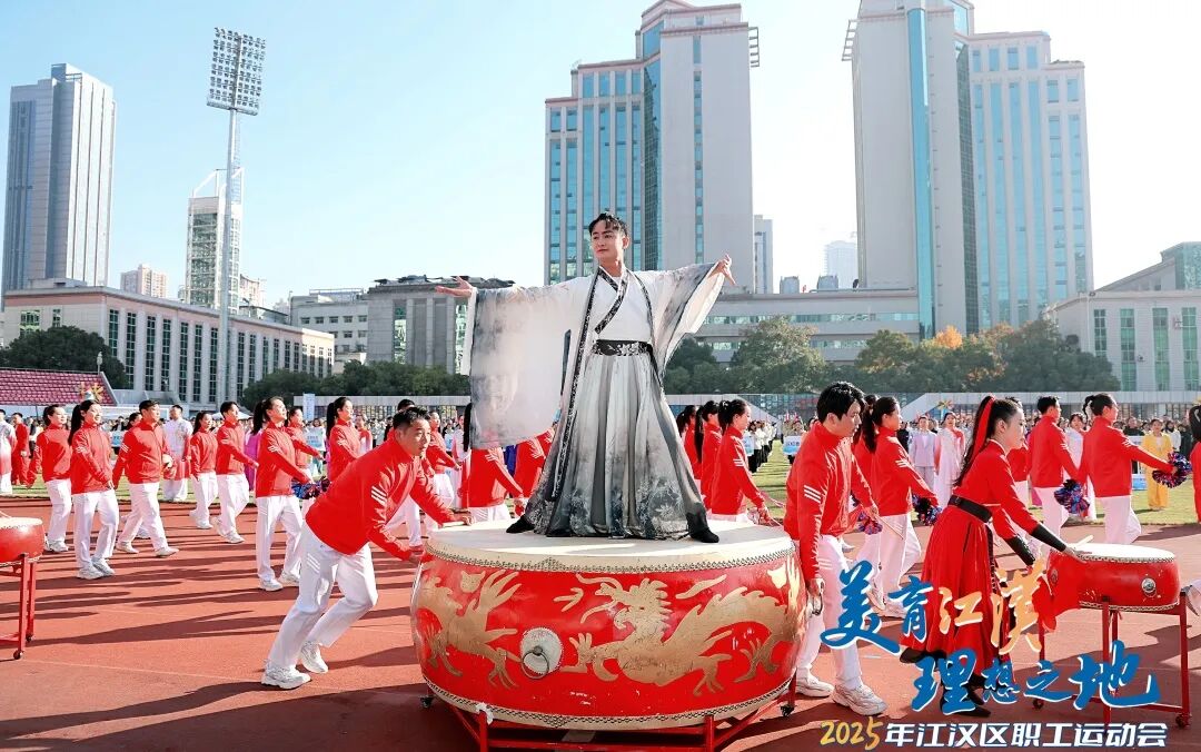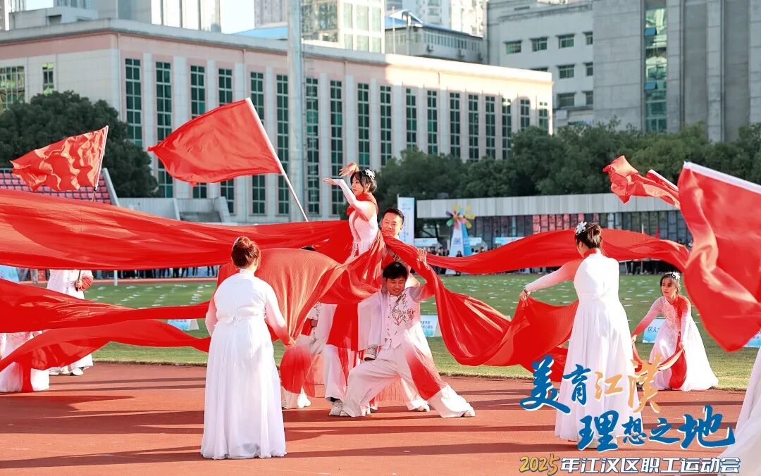 文藝演出環(huán)節(jié)同樣精彩紛呈。開場(chǎng)舞《美麗中國(guó)》以熱情舞步禮贊祖國(guó);體育舞蹈《躍動(dòng)未來》上演力量與美的碰撞;《活力江漢》歌曲串燒中,小歌手彭彥凱與武漢天使童聲合唱團(tuán)帶來動(dòng)人演唱,職工歌手聯(lián)袂獻(xiàn)唱《江漢四季》《相親相愛》,引發(fā)全場(chǎng)共鳴;千人工間操展演氣勢(shì)恢宏,全場(chǎng)配合呈現(xiàn)“I?JH”巨型畫面,將開幕式推向高潮。