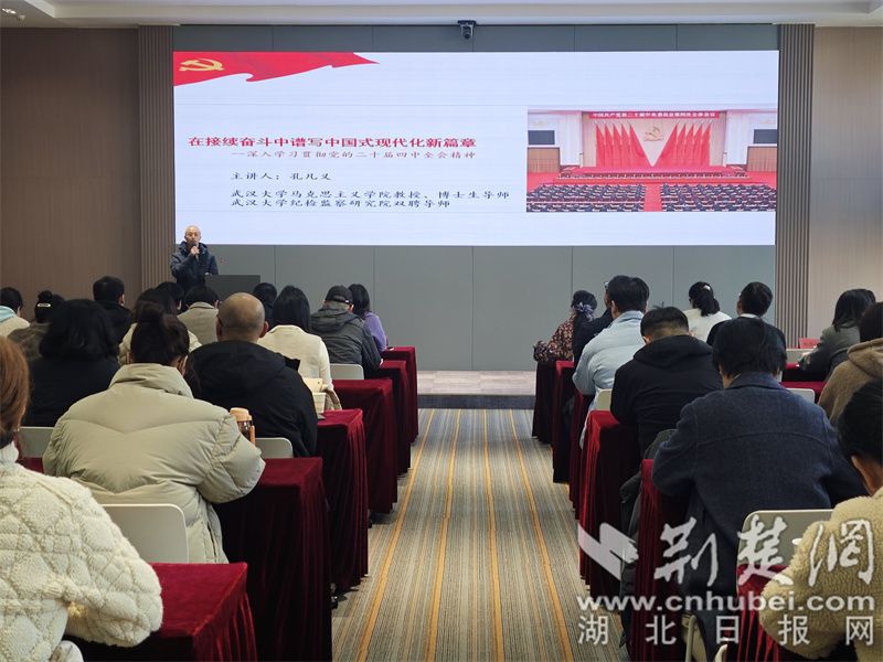 活動特邀武漢大學馬克思主義學院教授、博士生導師孔凡義作專題輔導。他以《在接續(xù)奮斗中譜寫中國式現(xiàn)代化新篇章——深入學習貫徹黨的二十屆四中全會精神》為題,全面系統(tǒng)地闡述了全會的重大歷史意義與鮮明特點,深入解讀了“十五五”時期的奮斗目標與重要部署,并結(jié)合新興領(lǐng)域黨建工作實際,對踐行黨的二十屆四中全會精神的責任要求作生動闡述?,F(xiàn)場聽眾全神貫注、認真記錄,不時響起陣陣熱烈的掌聲。