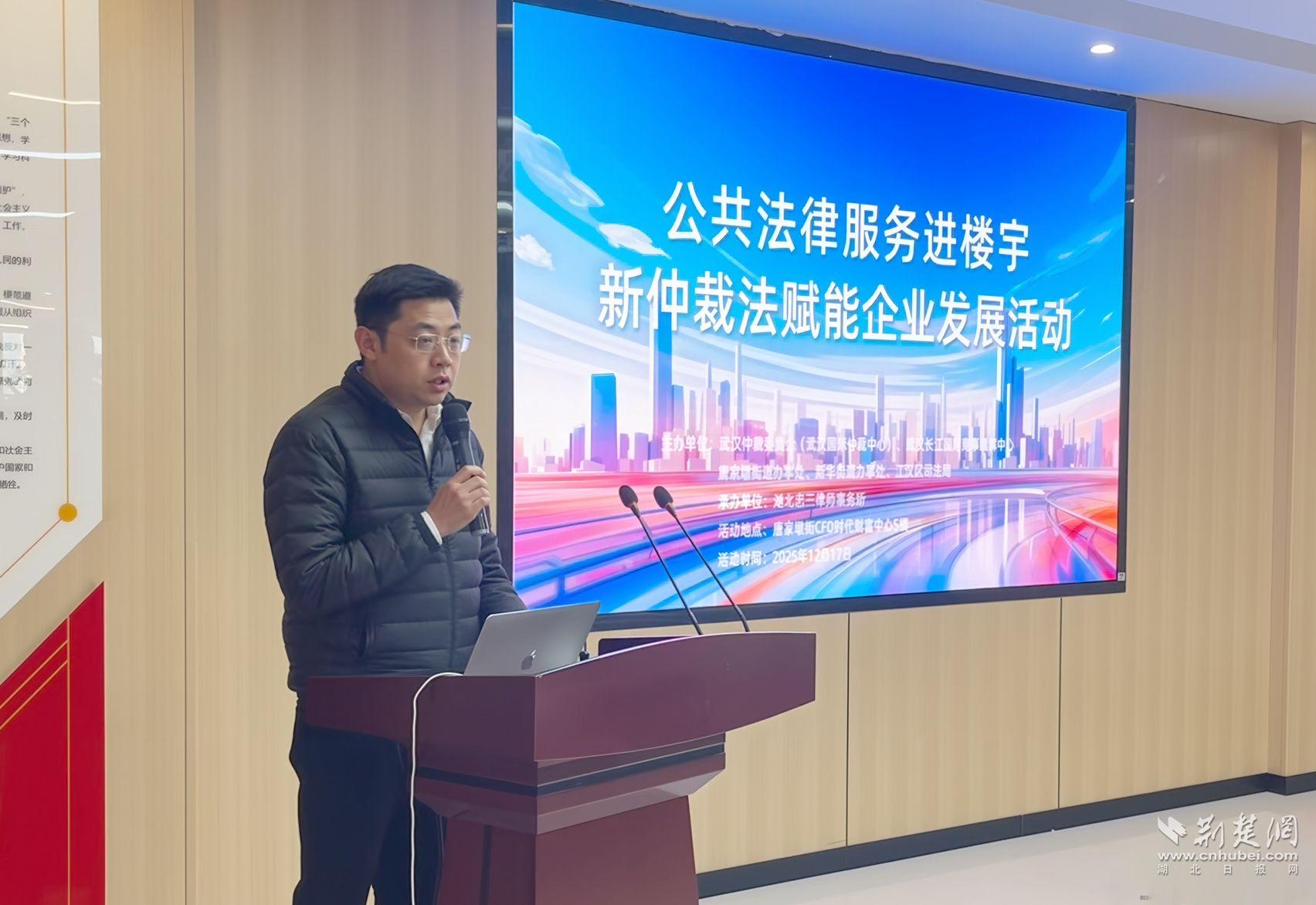 荊楚網(wǎng)(湖北日報網(wǎng))訊(記者 何婧 通訊員 顧蝶)為把法治服務(wù)送到企業(yè)發(fā)展最前沿,近日,人大唐家墩街道工委依托樓宇人大代表聯(lián)絡(luò)站,組織開展“新仲裁法賦能企業(yè)發(fā)展”主題活動。江漢區(qū)人大代表李諒、余佳奇走進(jìn)商務(wù)樓宇,與轄區(qū)20余家企業(yè)負(fù)責(zé)人面對面交流,通過專業(yè)解讀、互動答疑等方式,幫助企業(yè)用好新法、化解風(fēng)險。
