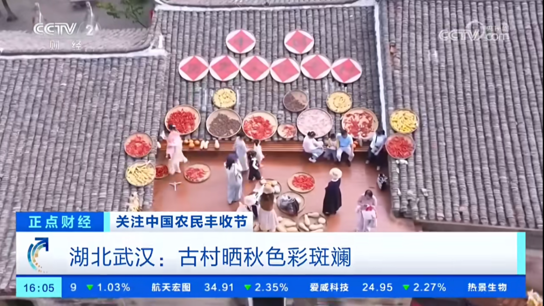 9月23日:CCTV-13《新聞直播間》、CCTV-4《中國(guó)新聞》、CCTV-2《正點(diǎn)財(cái)經(jīng)》、CCTV-1《晚間新聞》多個(gè)央視頻道聚焦黃陂大余灣,生動(dòng)呈現(xiàn)一幅“曬秋”與稻田收割交織的豐收盛景。