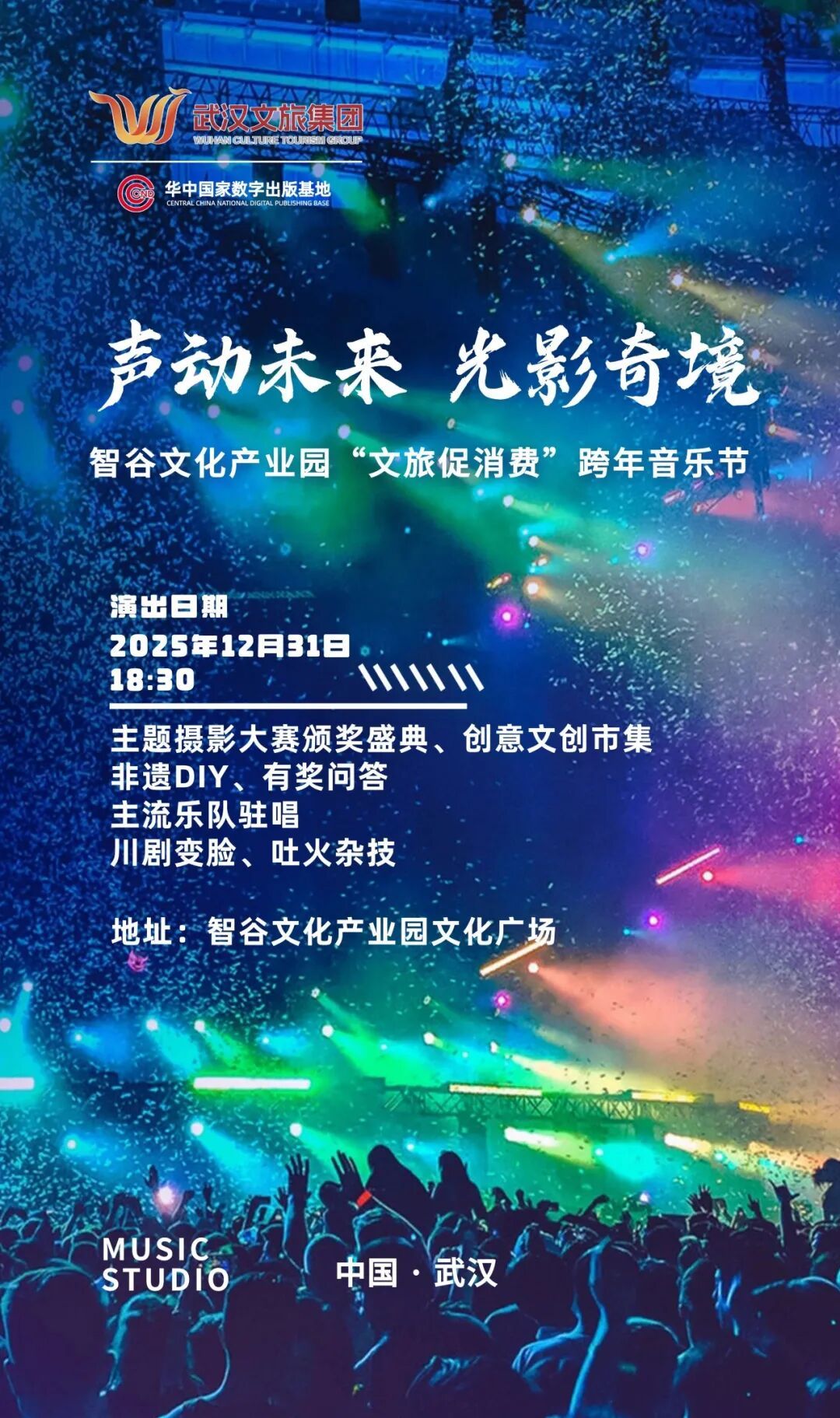 12月31日,“聲動(dòng)未來(lái)·光影奇境”2026“文旅促消費(fèi)”跨年音樂節(jié)將在智谷文化產(chǎn)業(yè)園舉行。來(lái)智谷跨年,不僅可以逛“文創(chuàng)+年貨市集”,體驗(yàn)非遺手藝、傳統(tǒng)小吃、潮玩好物,還可以伴隨小提琴演奏、搖滾樂隊(duì)演出、舞蹈、川劇變臉等精彩節(jié)目一起迎接2026年。