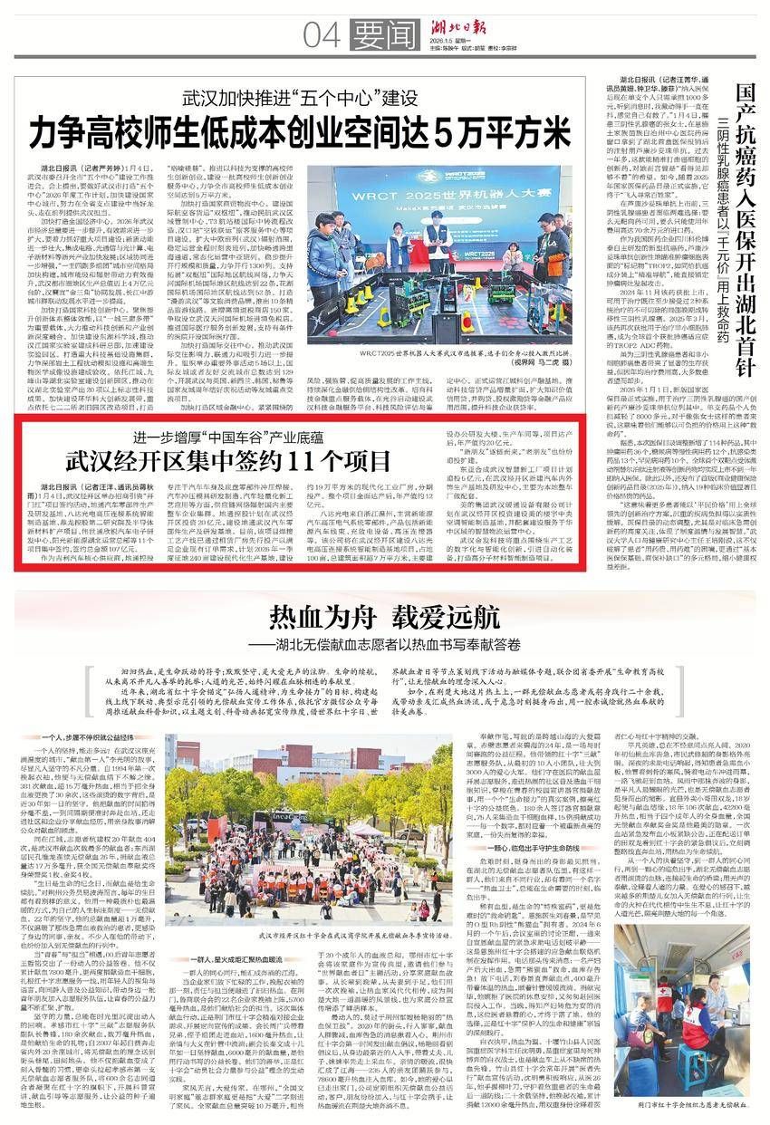 1月5日,湖北日報要聞版報道:進一步增厚“中國車谷”產(chǎn)業(yè)底蘊 武漢經(jīng)開區(qū)集中簽約11個項目