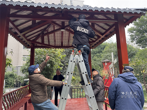 從亭體翻新、配套欄桿更換到照明設施增設,經(jīng)過大家共同努力,危亭徹底舊貌換新顏。居民們商議后,為新亭取名“梅園亭”。如今,翠竹紅梅掩映下的梅園亭外觀靚麗,兼具實用與安全,成為小區(qū)里的亮眼風景。“以后在這兒歇腳聊天,吹不著曬不著,太舒心了!”居民們圍坐閑談,愜意不已。