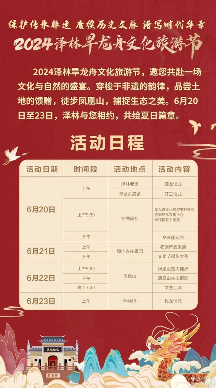 為了傳承這一國家級非遺,助推“澤林旱龍舟文化旅游品牌”的建設,今年已是澤林鎮(zhèn)舉辦“澤林旱龍舟文化旅游節(jié)”的第四個年頭。澤林鎮(zhèn)始終堅持進一步深挖文化魅力,堅定走好“以商養(yǎng)文、以文促商、文商互益”的文商融合發(fā)展新路子。
