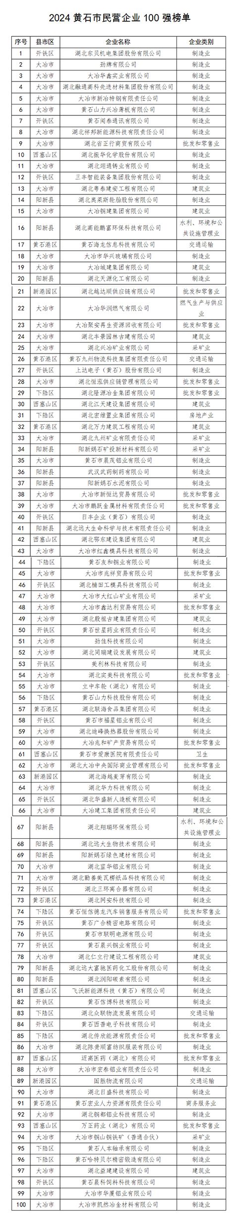 據(jù)悉,該榜單按照“湖北省民營(yíng)企業(yè)100強(qiáng)”系列榜單排序方法,以2023年度企業(yè)營(yíng)收總額(黃石地區(qū))作為主要指標(biāo),對(duì)自愿參加申報(bào)的民營(yíng)企業(yè)進(jìn)行排序,并征求相關(guān)部門意見建議而形成。