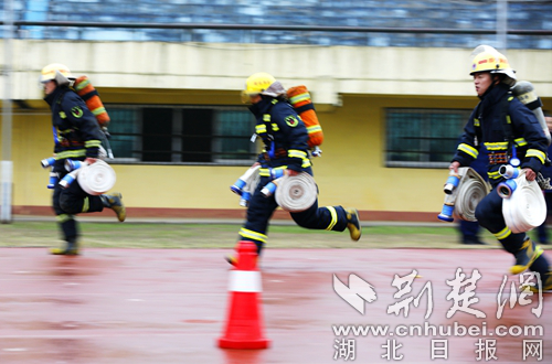 圖為開展100米負(fù)重跑科目現(xiàn)場(chǎng)。 通訊員 朱燕林?jǐn)z