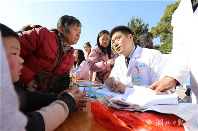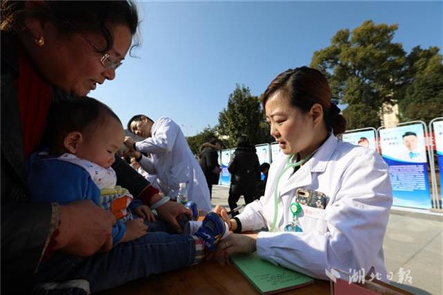 當天下午,同濟醫(yī)院兒科、小兒外科、眼科、耳鼻咽喉科、心臟大血管外科等20位專家團隊來到咸寧市咸安區(qū)高橋鎮(zhèn)文化廣場為當?shù)厣倌陜和M行義診,醫(yī)務(wù)人員為孩子們進行了兒童常見疾病篩查,細致地為每一個孩子做好記錄,并向家長講解疾病預(yù)防和治療常識,讓孩子們健康平安過大年。