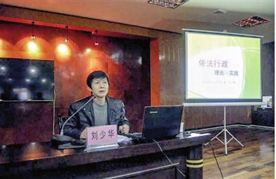 圖為劉少華講解《依法行政理論與實(shí)踐》普法課的情景