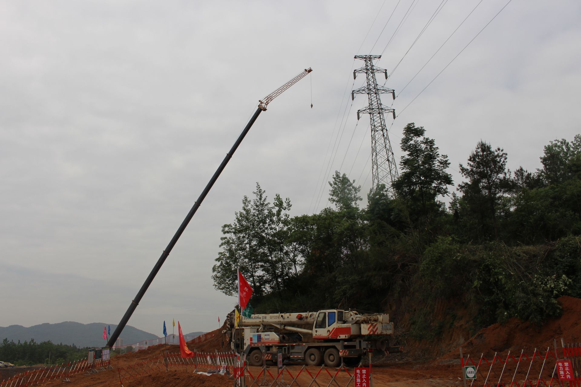 5月8日早上6點(diǎn),搶修人員現(xiàn)場(chǎng)通過吊車將桿塔錨固,對(duì)塔上導(dǎo)線進(jìn)行拆除等系列措施進(jìn)行搶修。看似簡(jiǎn)單的工作,在30米的高空操作費(fèi)時(shí)費(fèi)力,雖然天氣微涼,但是電力搶修人員的汗水早已浸透衣衫。
